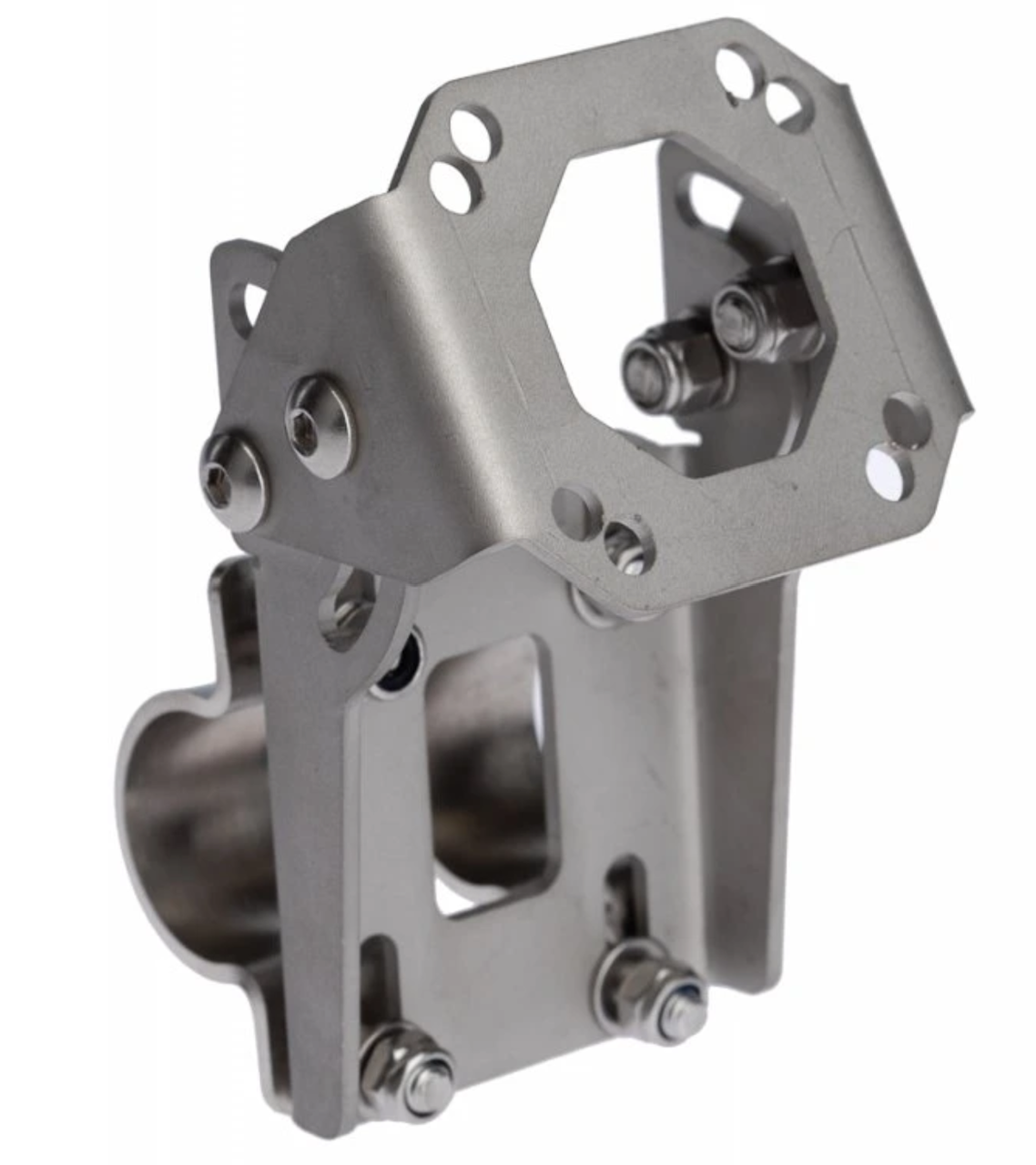 Es besteht aus 2 mm dickem Edelstahlblech. Alle Teile werden per Laser geschnitten und mit einer CNC-Maschine geformt. Für ein mattes Finish werden alle Oberflächen mit Keramik gestrahlt, um